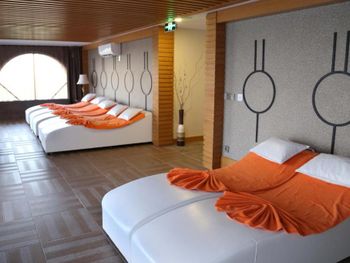 Вранье. Вместо двух номеров нам был предложен сьют двухкомнатный и плюс к нему бесплатный массаж и а ла карт рестораны, и вип павильон на пляже. Все это было бы отлично, но номер очень маленький для семьи с тремя детьми и пожилой мамой. Было не комфортно. Уборка производилась очень вяло, постоянно нужно было выпрашивать дополнительно воды, одеял всем не хватило, шампунь был только один для всего. Услуги явно не тянут на пятизвездочный отель. Чистота минус. Еда однообразная и я бы не сказала что всегда свежая. Фруктов крайне мало и все зеленые! Соки свежевыжетые за отдельную плату. К алкоголю не могли получить даже фрукт, так как он не полагался к этому коктелю!?