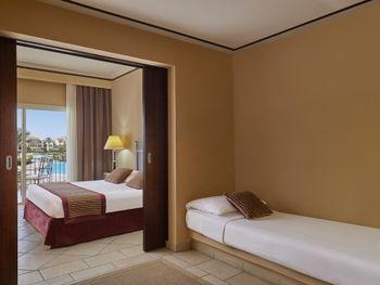 От мусорок на территории переодически идет неприятный запах. Из нашей семьи, двое получили расстройство желудка (египетский алкоголь не пили, и все отеля не ели). Уборка номеров на 3+