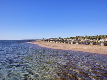 Примерно на 1км тянется заход до понтона, можно плавать в «загончике», вернее как плавать, сидеть по пояс в воде 😅 но мы ездили снорклить и дайвить в пролив Тирана на рифы, так что для нас это была не проблема , наоборот, отдыхали ; такой пляж очень подходит для отдыха с детьми