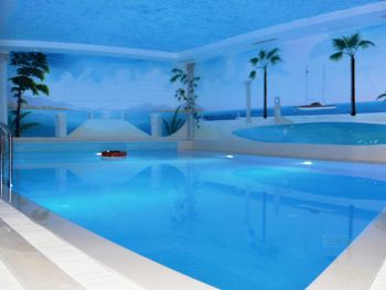 Сам отель старый потрепанный. Есть сауна и убогий бассейн внутри отеля воняющий хлоркой. Залезть в бассейн не рискнули. Дискотека до 24:00 уснуть в отеле не возможно. Обои в номере отклеиваются полотнами! нету ручек на тумбах, минни бар воняет, в номере вонят затхлостью.
