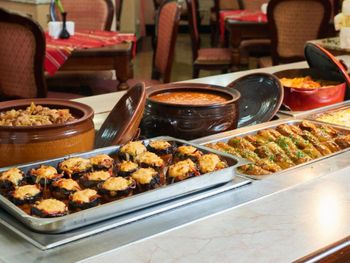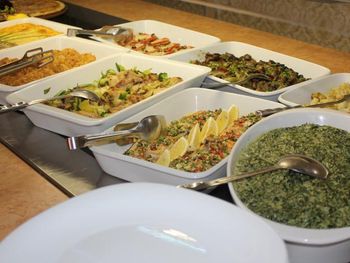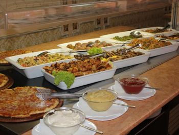 Еда могла бы быть разнообразнее - есть достаточное количество видов мяса (но способы их приготовления оставляют желать лучшего), неплохой выбор овощей, а вот гарниров маловато. Также мало здоровой пищи - все слишком жирное или сладкое. И вот выбор сладостей очень скуден. Кофе посредственный