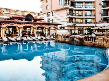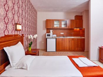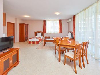 Вкусная, сытная, разнообразная еда. Прекрасная подача. До моря идти не далеко) хорошая транспортная развязка. А до Несебра ходили пешком ради прогулки. В номере есть все и для тех, кто снимает, как апартаменты, чтобы готовить самим.