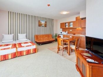 Норм апартаменты. По питанию слабоват,но готовят не плохо. Было комфортно. Номер был большой. Соотношение цена качество нормальное.
