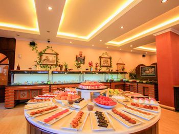Еда немного однообразная. Было бы хорошо разнообразить ассортимент, добавить побольше фруктов. Также рекомендую обучить бармена готовить хорошие коктейли.