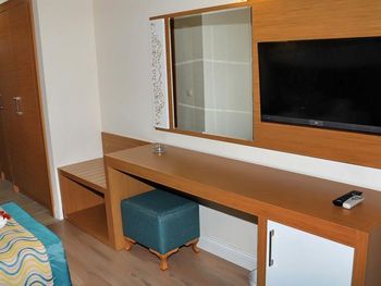 Кондиционер сначала вообще потек, после ремонта холодил недостаточно хорошо. Большой минус. Впрочем такая проблема обычно в больших отелях