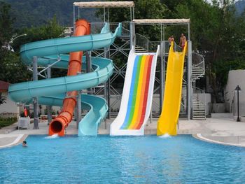 Внутри: Бассейны чистые, горки работали все кроме оранжевой.
