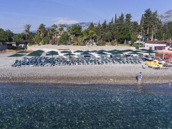 Пляж: лежаков достаточно,но пляжная зона маленькая из-за катамаранов и лодок, для поплавать места очень мало. Мы ходили в 7 утра и после ужина.