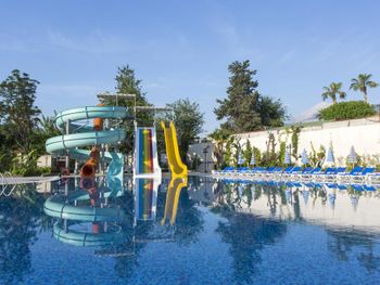 Расположение отеля недалеко от моря.отель большой два корпуса. На территории два больших бассейна, в одном из бассейнов располагаются три водных горки. Питание в отеле разнообразное, я бы сказала, на высшем уровне. Фрукты, овощи, мясо, рыба и даже были морепродукты. Все всегда очень свежее и вкусное.Развлечения тоже очень впечатлили: танцевальные национальные ансамбли, африканские акробаты, мексиканские танцы в костюмах с перьями и много чего еще интересного. Каждый день давали мороженое, очень вкусное оказалось,двух видов, каждый раз разное. Напитки и алкоголь порадовали своим разнообразием. Особенно когда был заезд европейцев, так все встрепенулись, много чего в отель завезли. В ассортименте добавился швепс и мохито. Мне этот отель с 4- мя звездами больше понравился, чем с 5- ю звездами тоже в Кемере. Рекомендую!