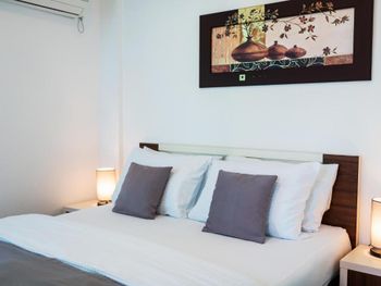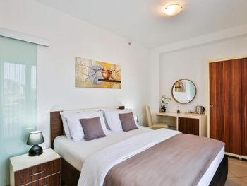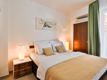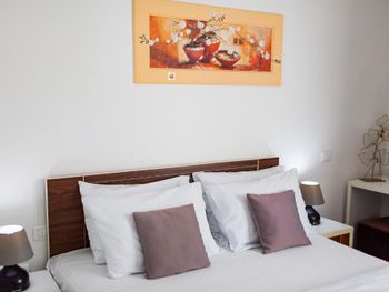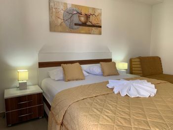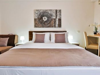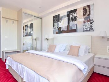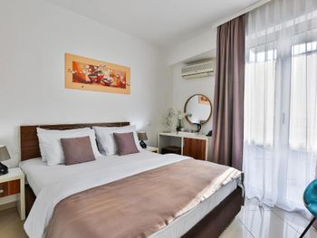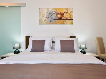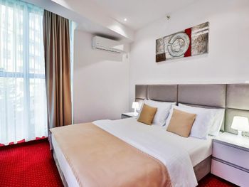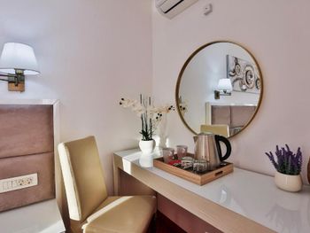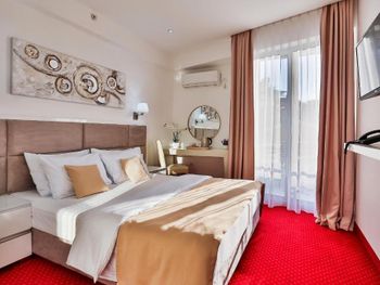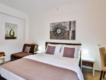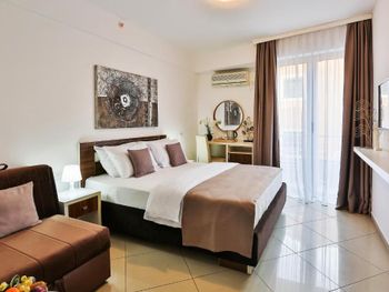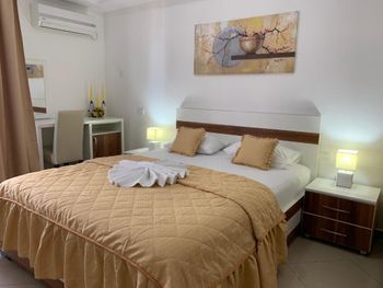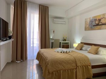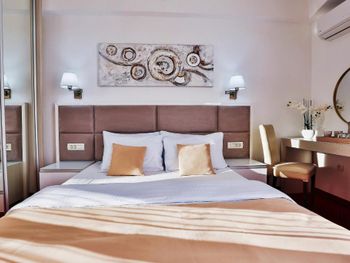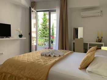 Номер расстроил. Во-первых должен был быть вид на море, а оказалось что море можно увидеть только наклонившись через перила терассы. В качестве одеяла на кровати лежала простынь и два не очень приятных пледа, это очень неудобно для пары. Розетки возле кровати работали только при всех закрытых окнах в номере, это очень раздражало. Завтраки были очень скудные и невкусные. А в один из вечеров вовсе отключили воду и мы с мужем не смогли принять душ перед сном. Никому не рекомендую этот отель.