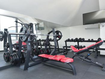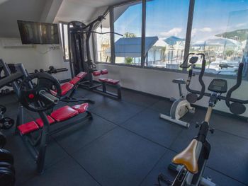 Бассейн на крыше и спортивный зал. Локация гостиницы. Интерьер.