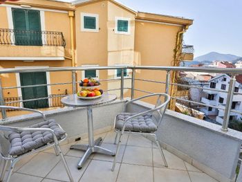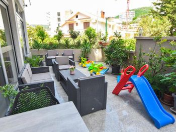 Отличное расположение отеля на тихой улочке вниз в сторону моря и ресторанов, вверх недалеко до дороги на Будву и Свети Стефан.