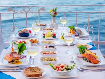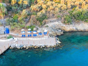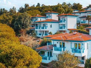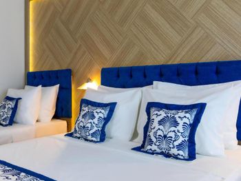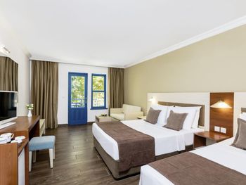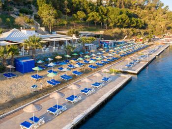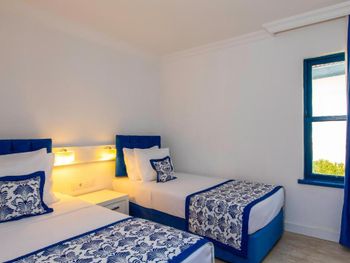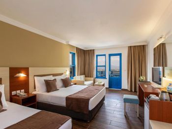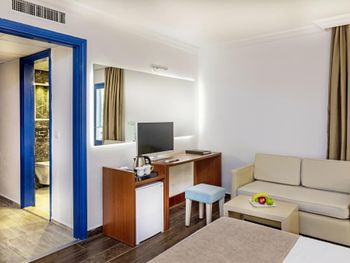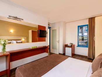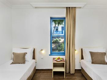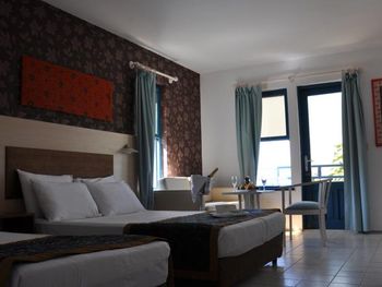 Усі номери готелю налічують балкон або патіо, телевізор з супутниковим телебаченням та міні-бар. З деяких номерів відкривається вид на Егейське море.