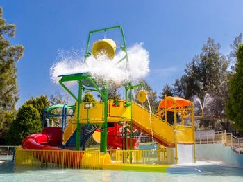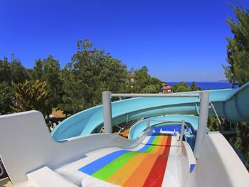 Одна из горок в мини-аквапарке травмаопасная — то ли воды недостаточно, то ли что еще, но при спуске не скользишь, пришлось помогать руками, в результате протерся купальник+ожог на коже.