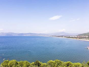 Территория очень зеленая, с левой стороны есть камерный пляж, где глубокое чистое море.