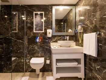 Персонал грубый, отель требует ремонта, рядом с номером день и ночь гудело какое то больщое обарудование, при включении главного кондиционера ваняло как из туалета пришлось пользоваться тем что в спальне.