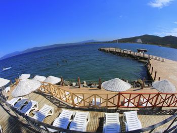 Много бездомных животных на территории отеля. Уборки нет пока не попросишь, но после замечаний убирают. Когда ветер дует со стороны моря вода на пляже грязная. На некоторых участках пляжа иногда есть запах канализации.