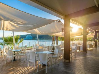 Скажу сразу я не требовательна к гостиницам, мне важно чтобы чисто и удобно спать. Здесь были всего сутки. Улучшенный номер с видом на море 100 евро за ночь. Честно, такого я не встречала даже в 3*. Началось все с парковки, на ней машин в три ряда, и топать до гостиницы вниз по горе с чемоданами та ещё радость. чтобы зарегистрироваться я отстояла в очереди на ресепшене около 30 минут, персонал с каменными уставшими лицами, заполнила на двоих 12 листов дибильных анкет, в ресторане на ужине муж матерился так что я думала мы даже эту несчастную ночь там не выдержим. Толпы (!!!) народу, огромная зона ресторана, маленькие тарелки, отсутствие подносов - чтобы ты себе не набирал много еды будь добр подойти на раздачи несколько раз и потолкаться в толпе без естественно социальной дистанции, попробуй найди свободный стол. Номер😭 Отсыревшая от полотенец дверь в ванную, банально нет места куда мыло положить, слив и стыки плитки на фото, стул на балконе после побоища, но больше всего меня выбесило отсутствие розеток! Возле кроватей их не было совсем, одна Розетка возле телека заряжала все девайсы. И при этом вторая билась током. И вишенка на торте, провод чайника длиной 10см, видно чтобы не украли, и подставка провисала в воздухе при включенном положении, такая себе левитация🤣 Утром просто сбежали оттуда не оглядываясь и с тех пор любое отвратное место/событие мы называем «лабранда» - стало именем нарицательным 😅 но отдам должное, вид с балкона чудесный. За него 100 евро не жалко