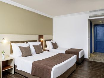 Горячая вода в душе с перебоями, питание не очень разнообразное, чай приносили такое ощущение из опресненной морской воды, на территории иногда пахло канализацией, анимации не было, вино разбавлено водой, спиртное местное, вай-фай только в лобби, отдыхают в основном немецкие пенсионеры