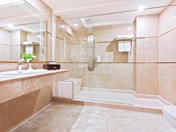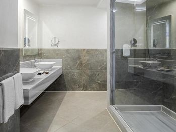 Все было великолепно. Мы приехали ночью (03:00), нам сразу же прикрепили на руку браслет, т.е. можно пользоваться всеми сервисами отеля, в том числе и круглосуточным баром/рестораном. В 06:00 нам дали прекрасный семейный номер с двумя комнатами, в каждой огромные кровати. Наша семья (2 взрослых и два ребенка) смогла в этом номере с комфортом поспать. Утром мы начали свой полноценный отдых, а в 13:00 смогли уже переселиться туда, куда и бронировали - в 2 отдельных номера. В дальнейшем все было на самом высшем уровне. Еда, чистота, развлечения, выход к морю - все идеально. Аквапарк - это отдельная песня. Дети там проводили все время.