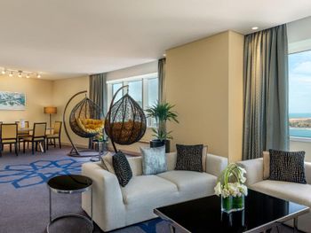 Я приехал около 12 дня в свой день рождение, с меня запросили допом 200 дирхам за ранее поселение. Остался осадочек, т е одно дело номеров нет для заселения, другое дело, когда отель такого уровня говорит тебе или ждите трех часов дня в свой праздник, или платите деньги чтобы в номер раньше заехать. Ни каких комплиментов от отеля в мой праздник так же не было.