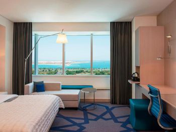 Сам по себе отель приятный , светлый , большой и чистый. Номера просторные с большими удобными кроватью. В номере были халаты, тапки и немало важно хорошая уходовая косметика . Номер дали с видом на море .