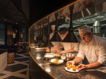 Ресторан на первом этаже. Цены не маленькие , но при этом стейки нам не понравились, персонал плохо понимала то ли Английский то ли меня) . Мы любители хороших стейков и разбираемся в этом). Это был наш первый раз когда посещали данный отель, после туда не ходили . А вот в ресторане на 25 мясо супер готовят