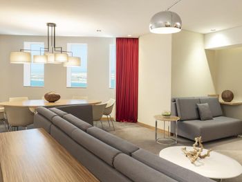 Не понравилось: маленькие грязные окна в номере суперлюкс (в русской версии Booking суперлюкс 50м2, при въезде номер называли по-другому). В здании отеля клуб, громкая музыка не даёт спать до поздней ночи. На завтраке тесно, несколько раз при входе образовывались очереди, так как площадь не позволяет разместить всех гостей (на ужине при этом комфортно, немного людей). Холодно в номере (кондиционер был всё время выключен).