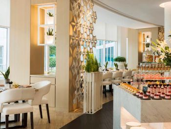 Discover 'la dolce vita' at Le Royal Méridien Abu Dhabi, where a 5-star haven awaits in the city's central business district. Revitalized with Midcentury Modern flair, the iconic avant-garde hotel is surrounded by shopping malls, parks, major company headquarters and only a few steps to the stunning Corniche Beach, ensuring an ideal retreat for both business and leisure. Experience timeless elegance in chic aesthetic guestrooms, enjoy a regal treatment at the exclusive Le Royal Club Lounge and unwind at the outdoor pool oasis. Taste the uncommon at award-winning restaurants featuring the 25-year old PJ's Irish Pub and the city's only revolving lounge with breathtaking sea views, Stratos. Explore more than 2,000 square metre of creative meeting spaces and enchanting wedding venues, uniquely distinguished as the only destination where events are embraced in the warm glow of natural daylight, ensuring an incomparable experience.