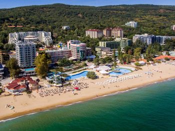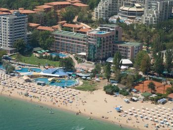 The Golden Sands Resort is situated 17 km north of Varna, at the foot of the Frangen Plateau. It is a unique combination of calm and warm sea, century-old forests extending down to the very sea shore, and a beach covered with fine golden sand. Aladja Monastery is 5 km away, while Varna Airport and a shopping mall are both 20 km away.