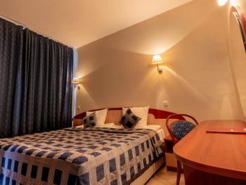 Во первых, я бронировал номер на двоих с одной большой кроватью, а по факту заселения, мне дали номер с двумя односпальными, раздельными кроватями. Я, естественно, был недоволен и попросил поменять номер, но к сожалению, пришёл человек и соединил кровати, не более того. Спать вдвоём было не удобно из-за того, что они вечно расходились и приходилось тесниться…