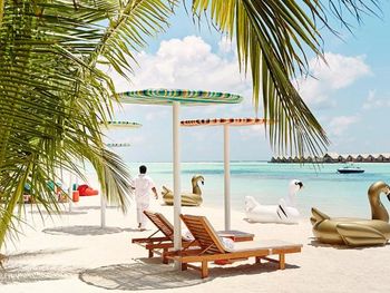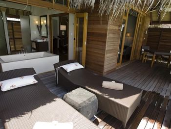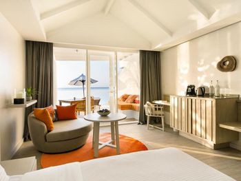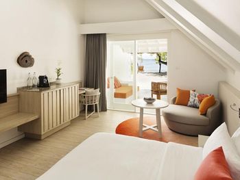 У готелі є прямий вихід на пляж і до лагуни. Номери 5-зіркового готелю LUX* South Ari Atoll обставлені розкішними меблями у пляжному стилі, налічують зону відпочинку на відкритому повітрі, телевізор з плоским екраном, шезлонги, кавоварку і міні-бар.