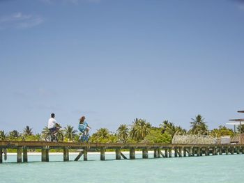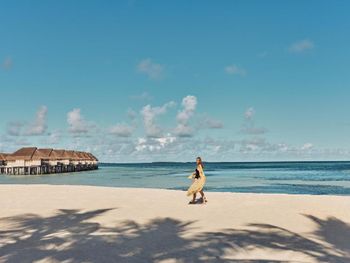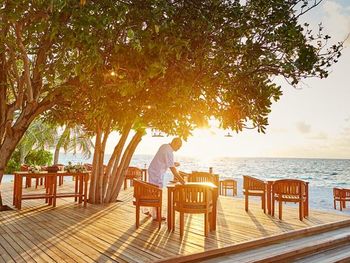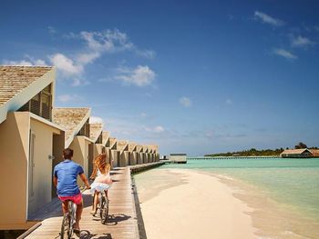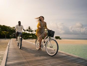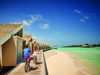 Отличные завтраки, хорошая еда в ресторанах, пляжные бунгало с видом на закат прекрасны! Можно взять напрокат велосипед за 5 долларов на целый день, можно красивый электроскутер за 50, есть где покататься. В целом, прекрасный отдых по 5* стандарту на Мальдивах.