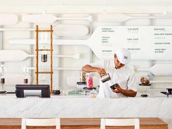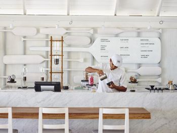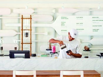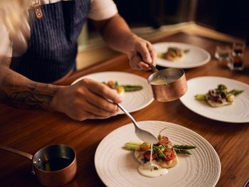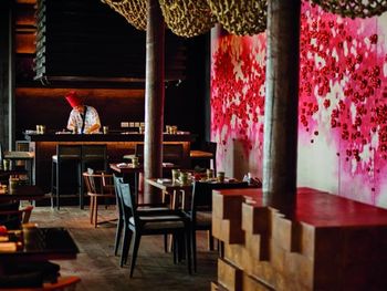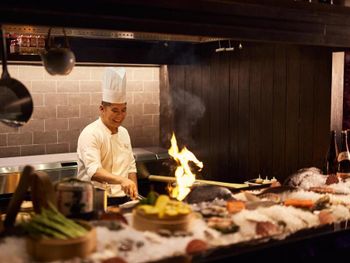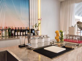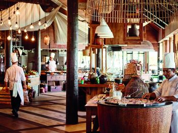 У ресторанах готелю сервірують "шведський стіл" зі страв міжнародної, азійської, італійської, середземноморської, близькосхідної та японської кухні.