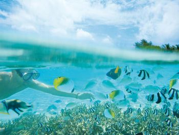 Нет домашнего рифа! От слова почти совсем нет! На тот что привозят смешно смотреть! Организация отправки нас в обратный рейс была безобразной! Нам подали гидросамолет и туда запихнули всех людей под завязку и чемоданов с перебором! По итогу были вынуждены сесть на остров для отдыха самолета! Итог- опоздали на свой рейс и курили новые билеты! Просто ужас! Нам не принесли извинения! Вот такой менеджмент!