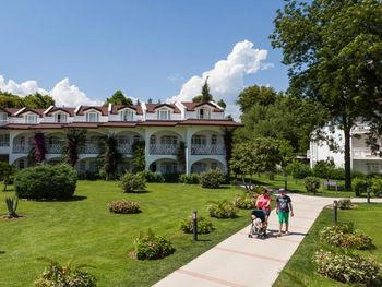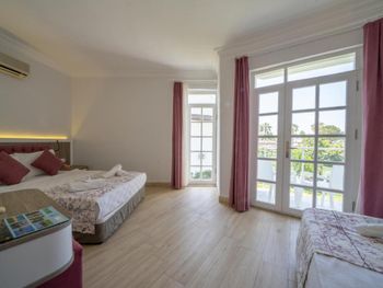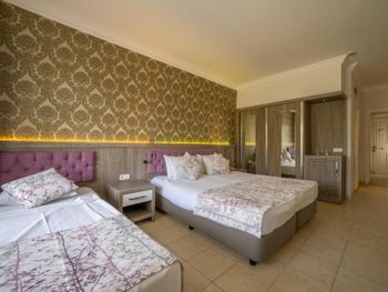 Отель для семейного отдыха, в основном семьи с детьми и взрослые/пожилые пары. Есть детская комната но работает она с 10:00-12:30 и с 14:00-17:30 НО только под присмотром родителей,какой в ней тогда смысл если ты и на полчаса не можешь оставить там ребенка и полежать/покупаться у бассейна. Также не понравилось что было мало анимации, детей в течении дня (до детской дискотеки вечерней) ничем не занимали. Есть детская площадка но скудная.Что касается питания-еда разнообразная и вкусная, обалденная выпечка.Голодными не останетесь даже на пляже есть снек бар и просто бар плюс еще с 11-14:00 на пляже бабушка готовила гюзлеме.Алкоголь местный но нормальный.Пляж грязноват, не мешало бы его почистить от веток, бычков. Дорога до пляжа через живописный лесок , минут 5-7 медленным шагом.Лежаки деревянные но нормальные. Заход в море первые пару метров огромные камни, заходить больно но есть пирс с которого можно спуститься. На пляже есть душевая, туалет и кабинки для переодевания.У нас был семейный номер, очень просторный с двумя ванными комнатами и большой терассой. Довольно уютный и чистый, полотенца и шампуни/гель/ кондиционер/мыло обновляли каждый день. Уборка номера по запросу, если не просить то убрали за 11дней 1 раз.