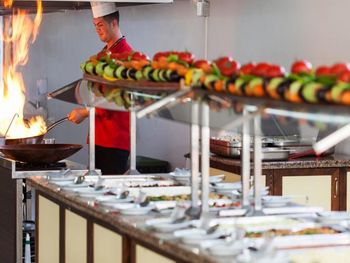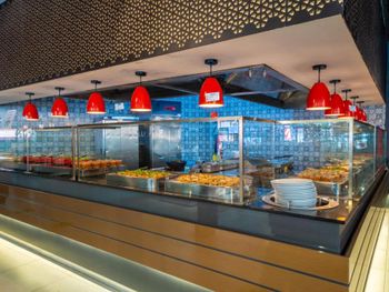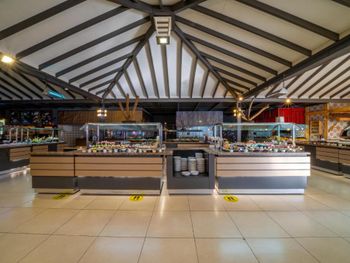В главном ресторане в помещении двери не закрывались. Было очень жарко как внутри так и снаружи. И полчища мух...и в тарелках и на продуктах на шведском столе...
