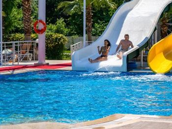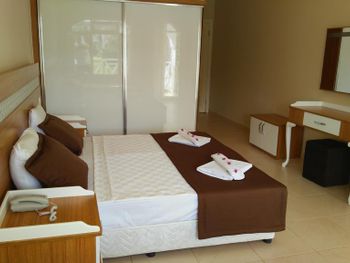 отель классный, территория красивая, ухоженная, большой бассейн, 2 детских бассейна и аквагорки. хорошая анимация, детям интересно, до пляжа нужно идти по красивой дорожке, через лесок, 5-7 минут в тени! Питание ультра все включено, еда везде, на пляже, у бассейна, кафе и бары. Персонал дружелюбный, говорит на 3х языках: английский, турецкий, русский. Номера очень просторные, чистые! Питание разнообразное!