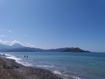 Если по пляжу пройти вправо минут 15-20 то будет большой общедоступный пляж с галькой без песка закрытый от ветра горой - волны меньше, вода чище. Там же начинается трекинговая тропа через горы - тропа местами размечена, где-то нужно поискать фарватер, за час-полтора можно до соседнего пляжа в лагуне дойти: чистый спокойный с плавным заходом для детей, рядом кэмпинг, много местных.