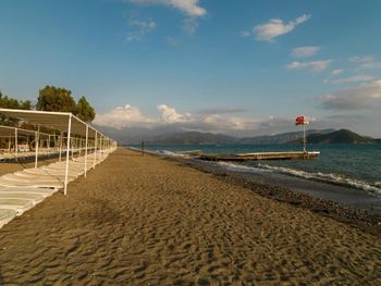То ли мы попали в какой-то циклон, то ли тут всегда такое море - мутное, перемешанное с песком, сильные волны во второй половине дня. В Олюденизе и Кабаке оно кристально чистое в это же время, а тут нет. На пляже песок серый, пылит.