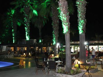 Хороший отель формата все включено - зелёная территория, бассейны, горки, семь приемов пищи в день - все как водится. К морю дорога ведёт через лесок с искусственным ручейком - днём там прохладно, красиво, ночью подсветка креативная, тоже красиво. На пляже бар, еда опять же, лепешки, бургеры - вот это вот все.