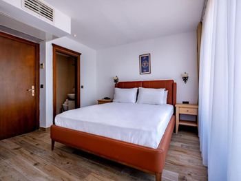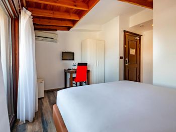 Звукоизоляции нет от слова совсем - слышно происходящее в коридоре и соседних номерах, отчетливо слышны передвигающиеся на завтраке стулья (кухня была этажом выше). Жёлтые пятна на потолке в комнате и санузле, очень потрепанная мебель, в номере было не совсем чисто при заезде. Вытяжка в санузле также бы не помешала. Номер с видом на море - не выглядит как то, за что стоит доплачивать в данном случае