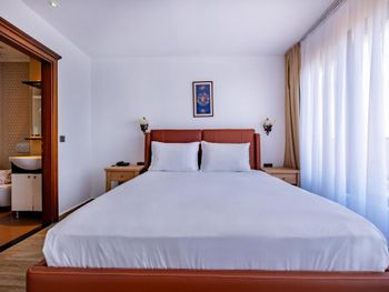 Завтраки-не плохие, каждый день одно и тоже, нет смены. В гостинице только завтрак. Гостиница требует ремонта. Нет халатов. Нет балконов. Номера для 2-х маленькие, с ковровым покрытием, но в городской гостинице в основном все такие. 3-х местные большие с паркетом. Лучше брать Номера со 2 и выше этажей- есть вид на зелень и Босфор. Частичное совпадение с фото, предоставленные букингом! Соотношение цена и качество на 100%!