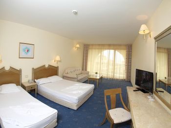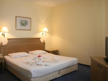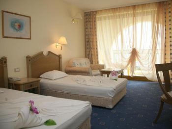 Отличная кухня. Удобное размещение отеля. Пляж отделен молом, поэтому море былоспокойно не смотря на ветер. Хороший и большой аквапарк. Развлекательные программы.