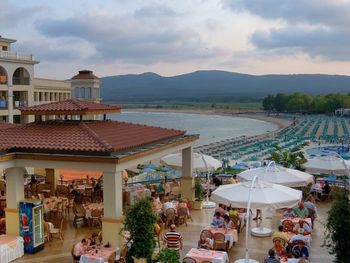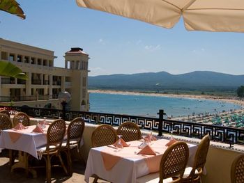 Крім того, гості можуть спробувати смачні страви італійської кухні в ресторані Milanese з обслуговуванням по меню та скуштувати неперевершені болгарські делікатеси у традиційній таверні на території готелю. Із головного ресторану Marina Palace відкривається панорамний вид на курортний готель.