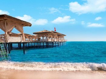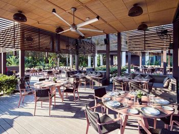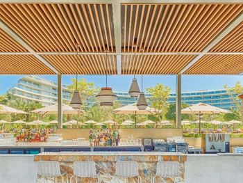 на пляже и на пирсе ! 🔥🔥🔥всем рекомендую габану на пирсе не пожалеете !Неверряиный сервис и выбор свежих фруктов ,коктейлей и десертов 👍Детский клуб без комментариев Все говорят на русском ,каждый час лучшие новые мероприятия ,Я в восторге !Всем рекомендую прокатится в 15:00 на велосипедной прогулке ,очень впечатляет !!!!Массажист Анна профессионал очень понравилась 🥰