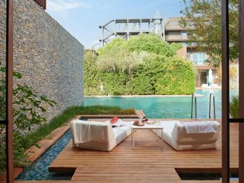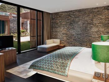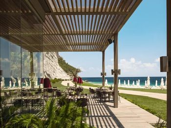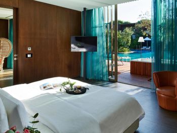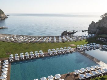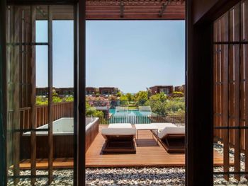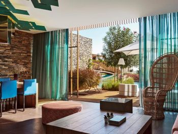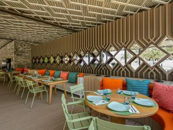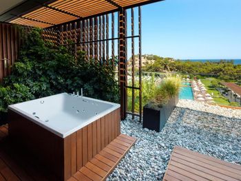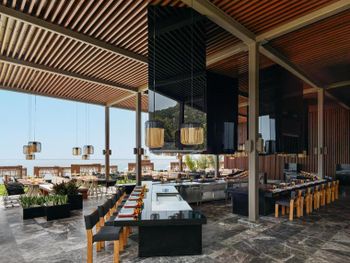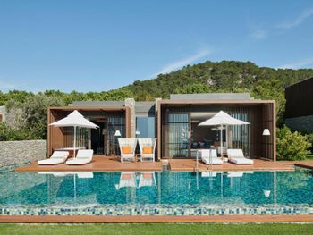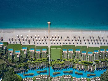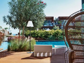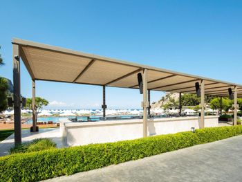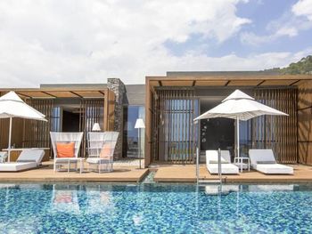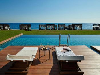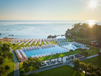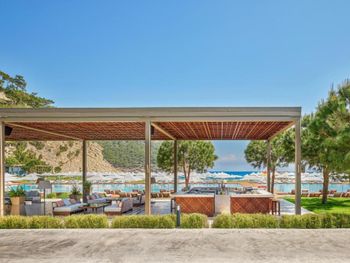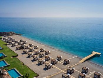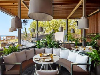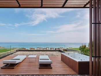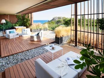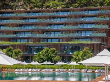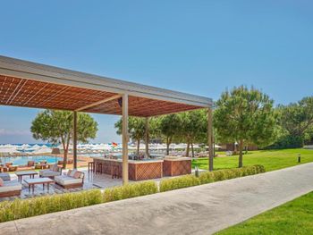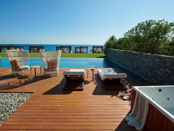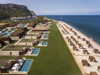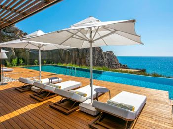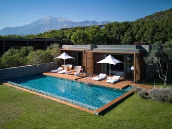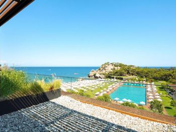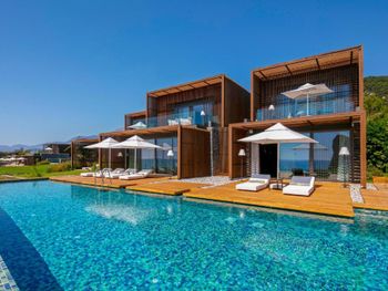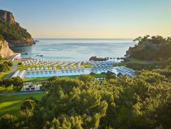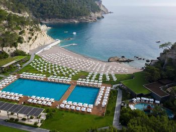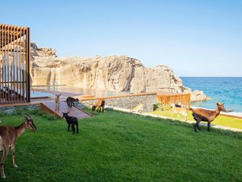 Брали двухкомнатный номер, потрясающая террасса. Мы жили на последнем этаже не в главном здании. Косметика отличная (боттега), ассистенты - супер! прекрасное месторасположение, чудесные виды, горы. Пляж - каменистый , если кому важно. Для детей - шоу каждый вечер по полчаса, в целом интересные. Так как кухня нам не подходила мы заказывали все лично каждый раз. Кидс клаб работает до поздней ночи. В целом, провести неделю - отличный вариант. Козочки горные, они спускаются и ходят по пляжу. Это необычно и красиво