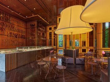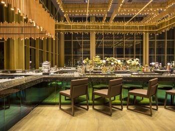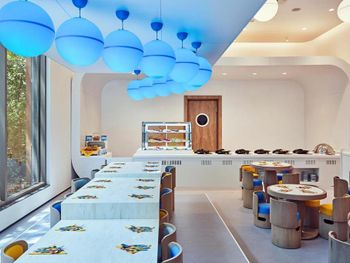 Долгая работа поваров/или официантов, не знаю точно. У нас всегда была уже заказана заранее еда, но все равно мы ждали частенько по 40 - 60 минут. Даже уже готовый борщ несли почти час ребенку , тут наверное скорее дело в официантах и их забывчивости или неспешности. Я могу в принципе подождать , но ребенок начинает капризничать при долгом ожидании. Система не шведский стол, есть некоторые позиции за стеклом, но все заказываешь по меню. На мой взгляд, это конечно красиво, что никто не шастает с тарелками, но с детьми очень неудобно из за вечного ожидания еды.
