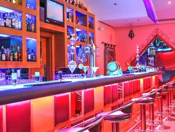 Enjoy your lunch on the terrace or take in breathtaking views of the city while sipping a cocktail at the bar. A blend of French, Moroccan and Italian food is served at Le Belvedere and oriental finger food can be tasted at the Orient Café.