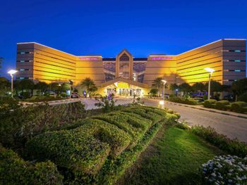 Добраться в отель и из отеля, можно только на такси - шатлы в город не предусмотрены. Ввиду удаленности, питание только в заведениях отеля, цена выше среднего. Не работающий аттракцион - было бы интересно прокатится.