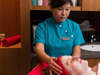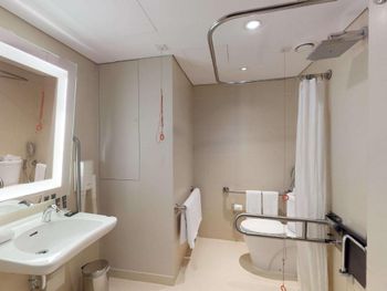 На ресепшн нас отказались заселяться на 1 ночь, сказали, что нет свободных номеров. Прошу обратить внимание что мы были с маленьким ребёнком! И Девушка на ресепшене отправила нас идти дальше по улице и искать другой отель… Так как мы часто путешествуем я решила попробовать забронировать через букинг на 1 ночь.. и о чудо 2 номера на 1 ночь получилось забронировать! И только после брони нас заселили (на все потребовался час.. 20 минут бронь через приложение и 40 минут оформление на стойке) но да ладно, дальше хуже! нам отдали наши карты(ключи) и мы пошли на заселение, Девушка на ресепшене не сказала ничего про то какой этаж и как пройти до наших номеров… у нас с мужем был номер 1011, а у моих родителей был полубокс номер 3003. Мы самостоятельно зашли в лифт и были удивлены потому что этажы начинались то ли с 5 или 6 этажа и заканчивались 27… мы поехали на этаж М где была еда а как бы и 2 этаж после лобби мы думали что наш условно 1 этаж где начинаются номера, но мы ошиблись и не понимали как попасть в номер и если у нас 10 этаж если брать первые 2 цифры тогда у родителей какой ведь этажей в этом лифте 27 а у них 30… мы зашли случайно в служебное помещение на этаже М и охрана выбежала и помогла нам с объяснением где наши номера и оказалось что полубоксы это другие лифты которые находятся в другом отсеке… в общем ужас! с горем пополам мы зашли в наши номера у нас в номере не было ни щёток ни кондиционера для волос все скромно! у родителей в полулюксе на 3 была лишь 1 щётка! смешно! а так же очень холодно 16 градусов вызвали ремонтника, он пришёл но оказалось что кондиционер сломан и починить нельзя… а так же не было горячей воды оказывается она включается с кнопки! кто бы мог догадаться? переселяться не стали потому что ребёнок устал и уже спал на ходу. ужасное впечатление конечно произвёл отель и персонал!